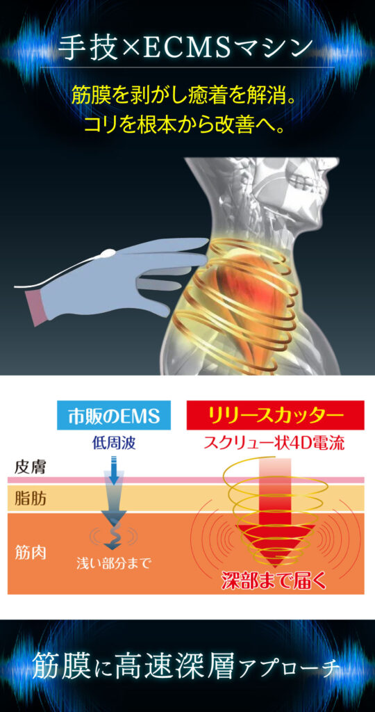 世界初!「4D電流(ECMS)」を用いて「筋膜の癒着」と「手技で届かない奥のコリ」を